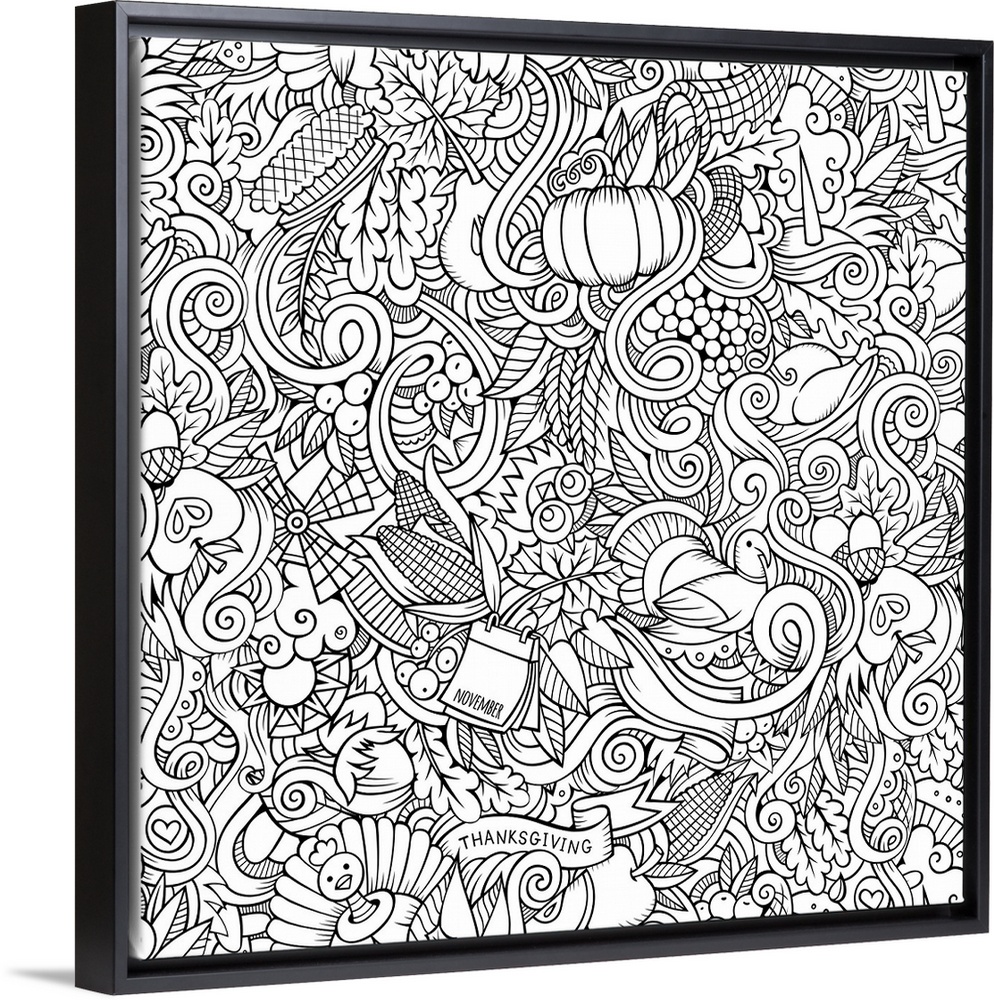<p>A series of Thanksgiving and harvest-themed objects, such as pumpkins, leaves, and turkeys. Perfect for Coloring Canvas.</p>