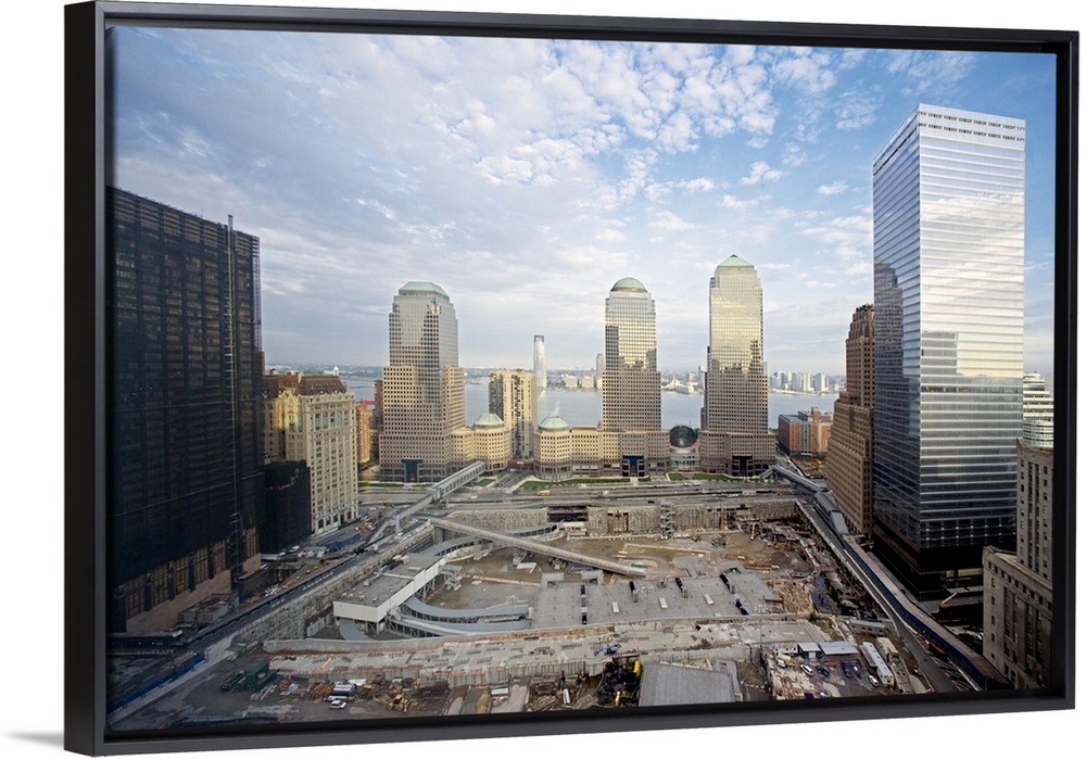 <p>The 16 acre World Trade Center site cleared and prepared for reconstruction. The new WTC will include One World Trade Center (Freedom Tower), memorial pools on the footprints of the Twin Towers and a 9-11 Museum. At right is the new WTC 7, replacing the third WTC skyscraper to collapse on Sept. 11, 2001. May 20, 2006. Photo by Carol Highsmith.</p>