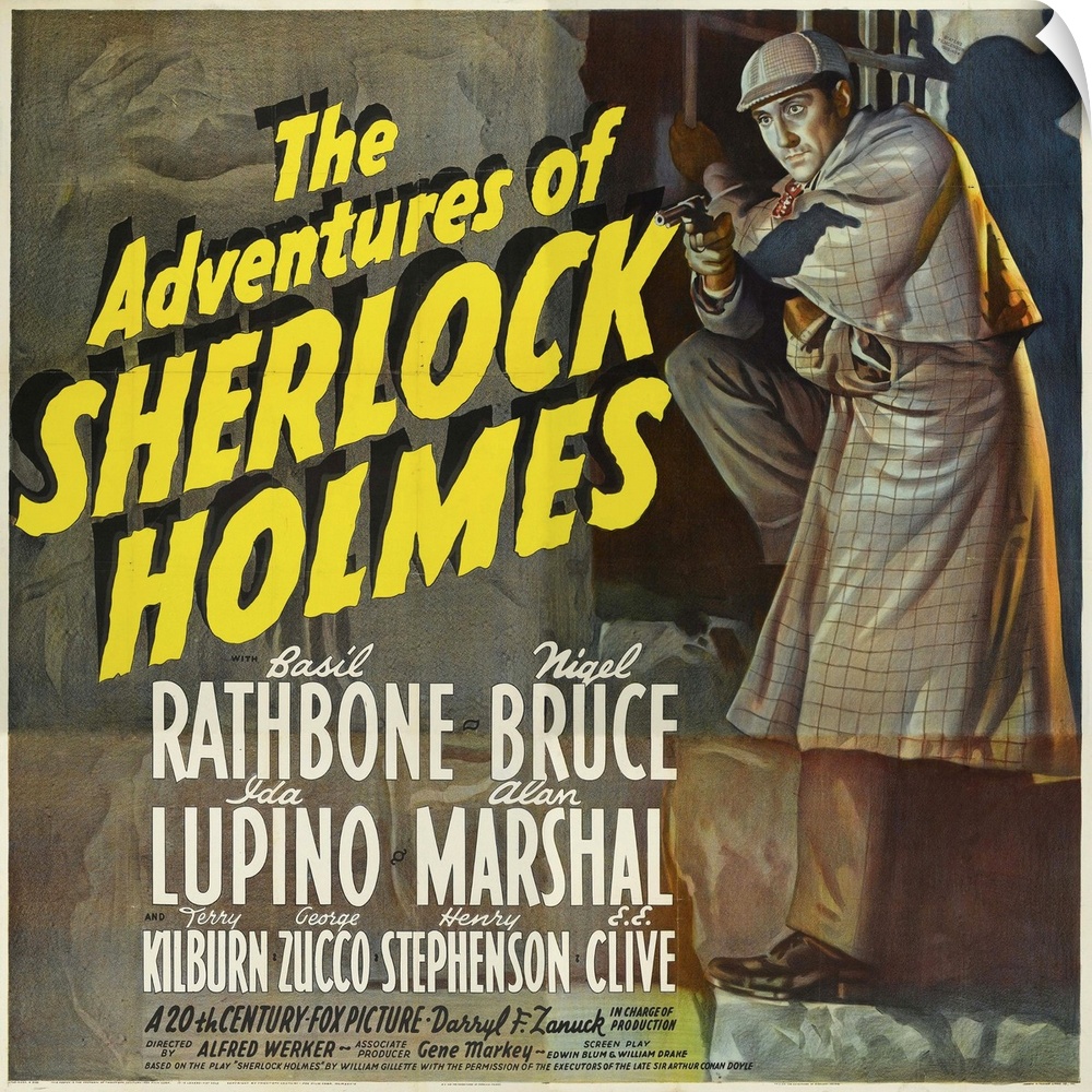 <p>The Adventures Of Sherlock Holmes, Basil Rathbone On Poster Art, 1939.</p>