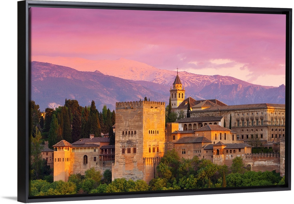 <p>The dramatic Alhambra Palace illuminated at sunset, Granada, Granada Province, Andalucia, Spain</p>