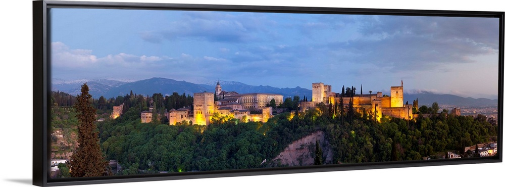 <p>The dramatic Alhambra Palace illuminated at dusk, Granada, Granada Province, Andalucia, Spain</p>