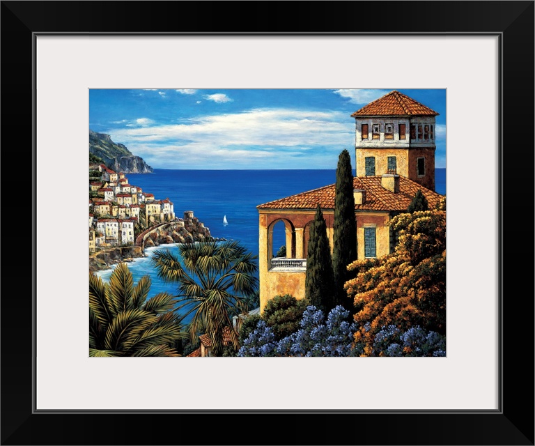 <p>Contemporary painting with a view of the village and water on the Amalfi coast.</p>