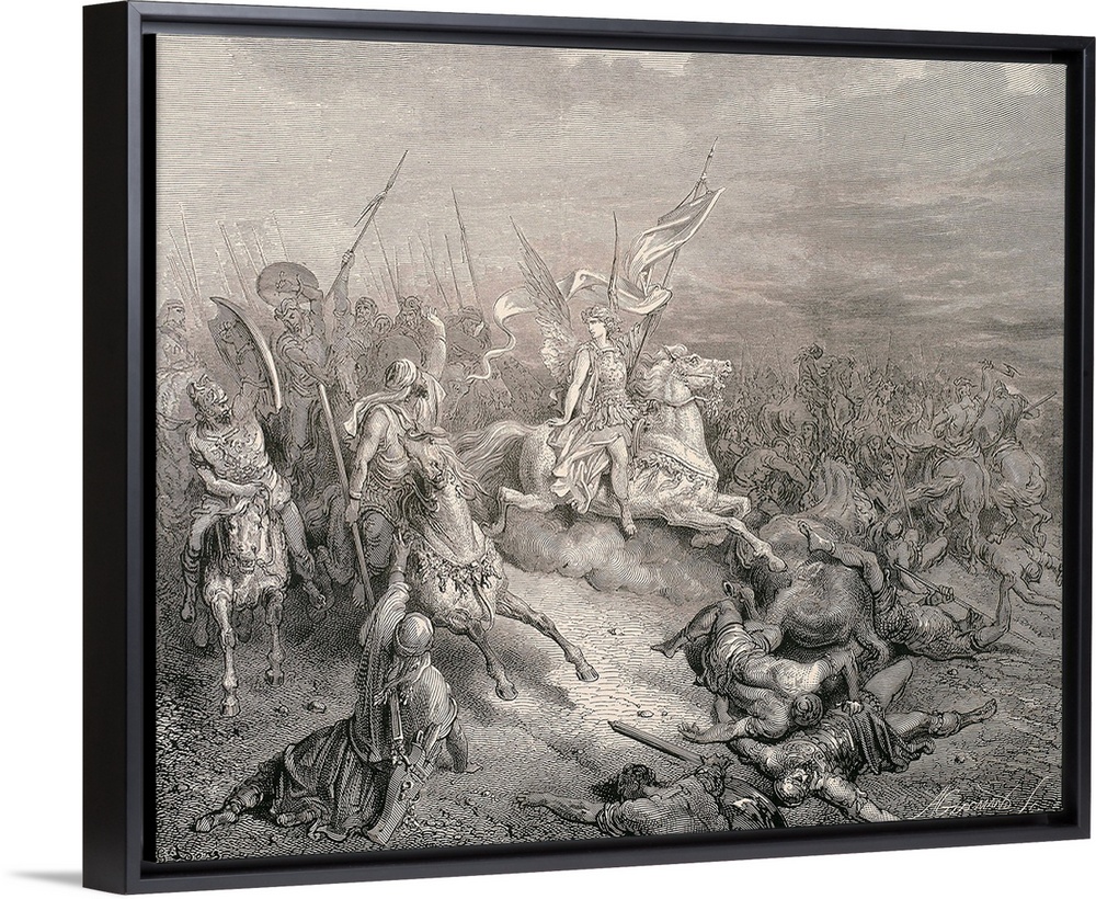 <p>Dore, Paul Gustave (1832-1883). La Sainte Bible. 1866. The angel of the Maccabees. Engraving. -</p>