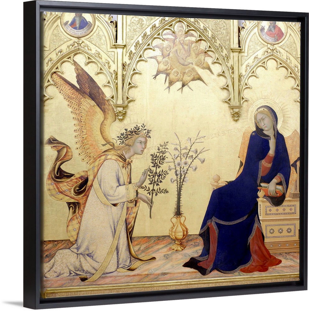 <p>Detail of The Annunciation with Two Saints by Simone Martini (Italian, 1285-1344), 1333. Tempera and gold leaf on wood panel, 210 x 184 cm (82.7 x 72.4 in). Galleria degli Uffizi, Florence, Italy.</p>