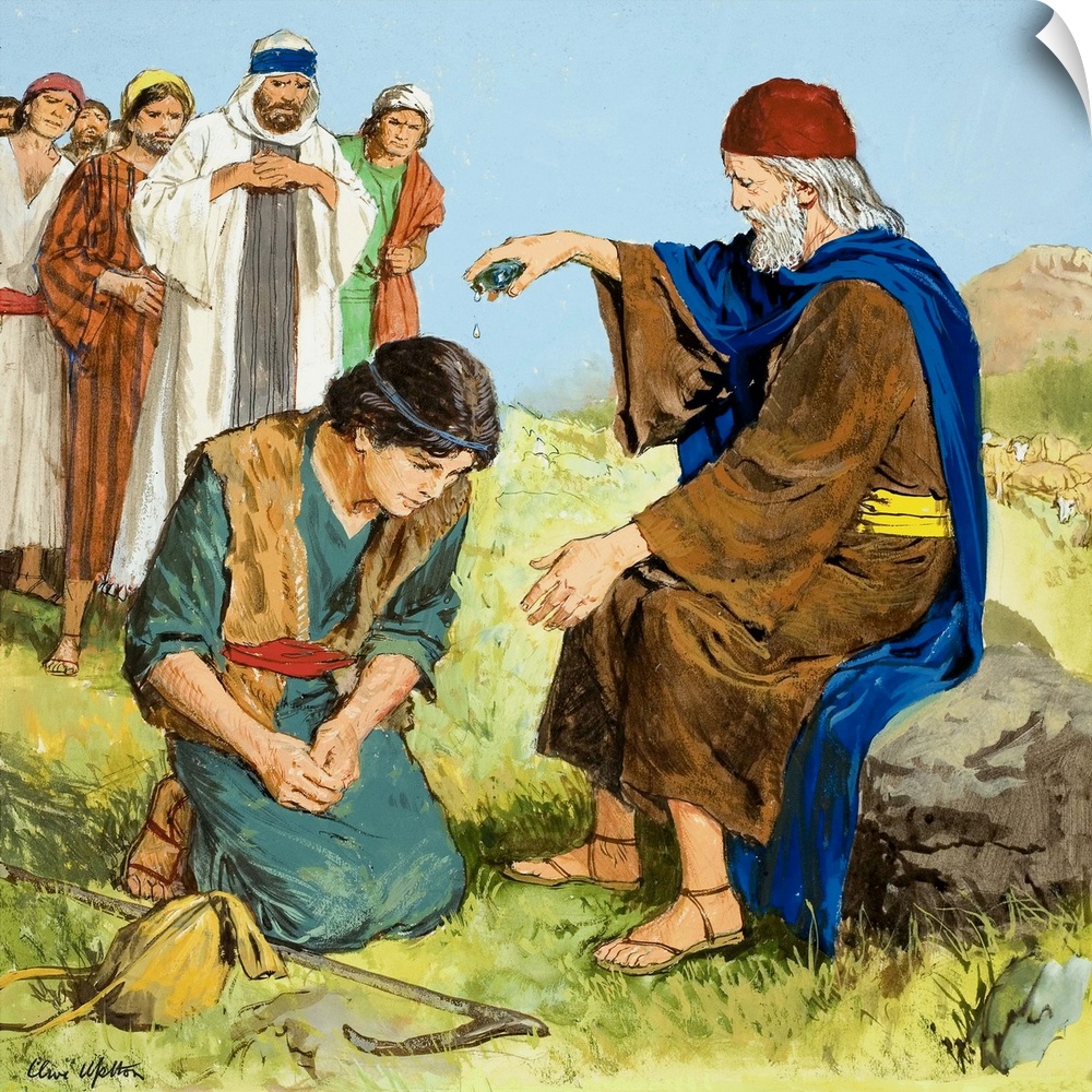 <p>The Story of David retold from the First Book of Samuel in the Bible: The Anointing of David. Original artwork for illustration on p 9 of Treasure issue no 218.</p>