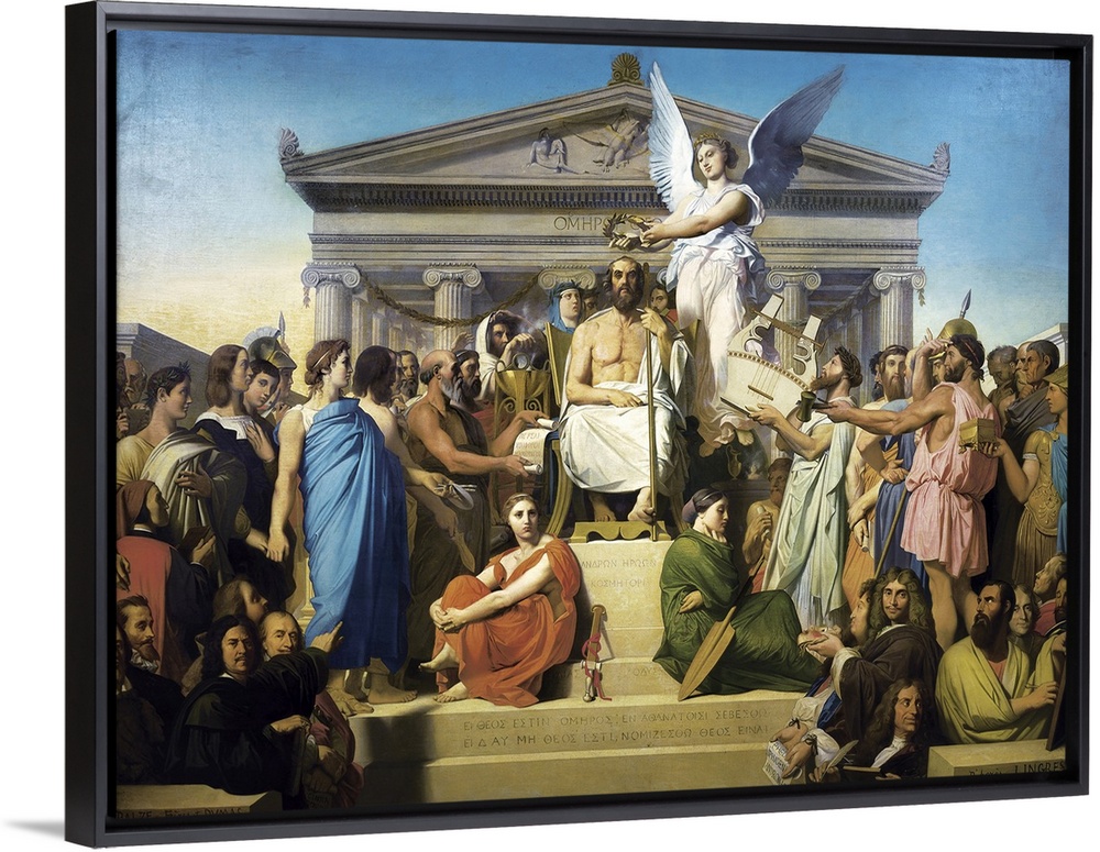 <p>DUMAS, Michel (1812-1885); BALZE, Raymond (1818-1909); BALZE, Jean Paul Etienne (1815-1884). The Apotheosis of Homer. 1855. Copy from a work by J. Ingres painted in 1827 with the same title. Soffit that decorates the Clarac Hall of the Museum. Painted in</p>