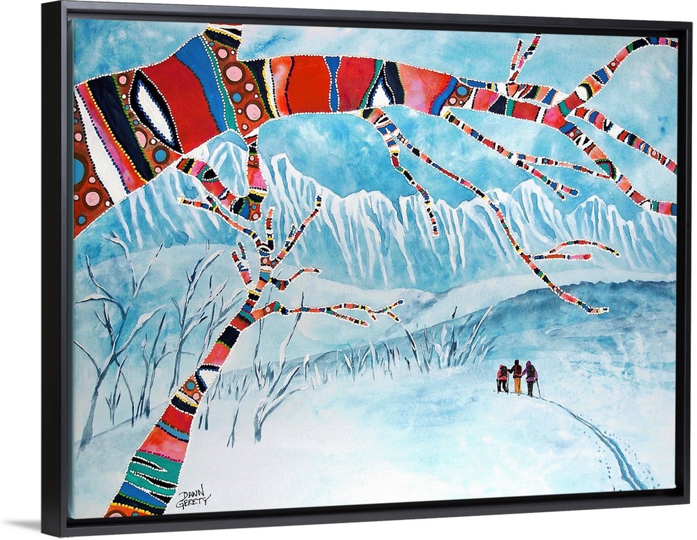 <p>Dawn Gerety was born in Sydney, Australia and raised across the globe in Girdwood, Alaska. As a lifelong Alaskan, she is moved by the natural splendor that has surrounded her her entire life – mountains, wildlife, rivers, wildflowers and outdoor activities. Dawn paints these images and creates her own language with a swipe of color or a rigid line of dots. She injects a fiercely whimsical vitality to Alaskan icons the only way she knows how.</p>