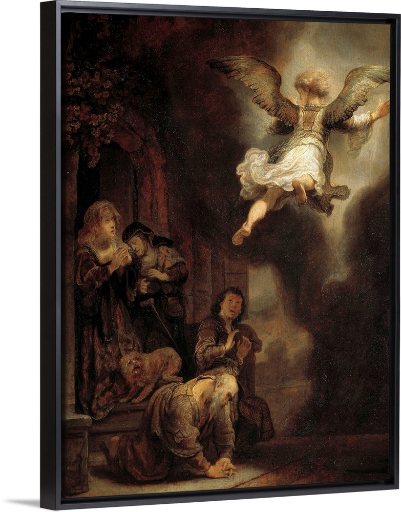 <p>The archangel Raphael leaving the family of Tobie. Painting by Harmensz Van Rijn Rembrandt (1606-1669), 1637. 0,66 x 0,52 m. Louvre Museum, Paris</p>