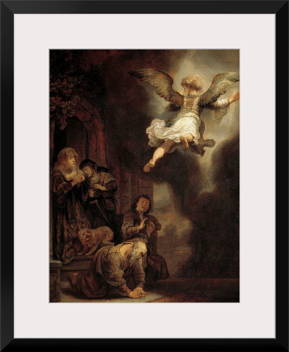 <p>The archangel Raphael leaving the family of Tobie. Painting by Harmensz Van Rijn Rembrandt (1606-1669), 1637. 0,66 x 0,52 m. Louvre Museum, Paris</p>