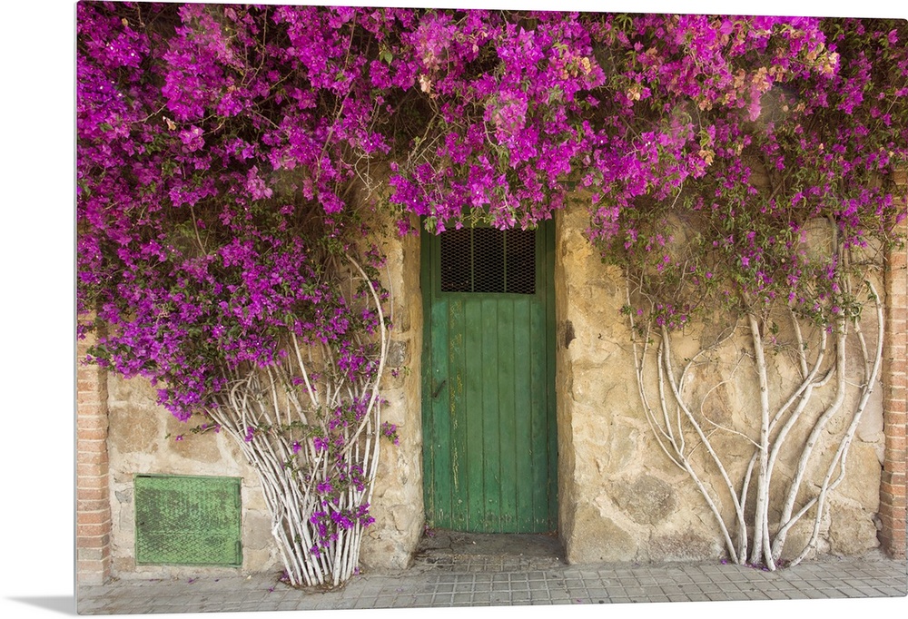 <p>The architecture of the Barcelona - narrow streets, green door on the old buildings and flowers at the entrance.</p>