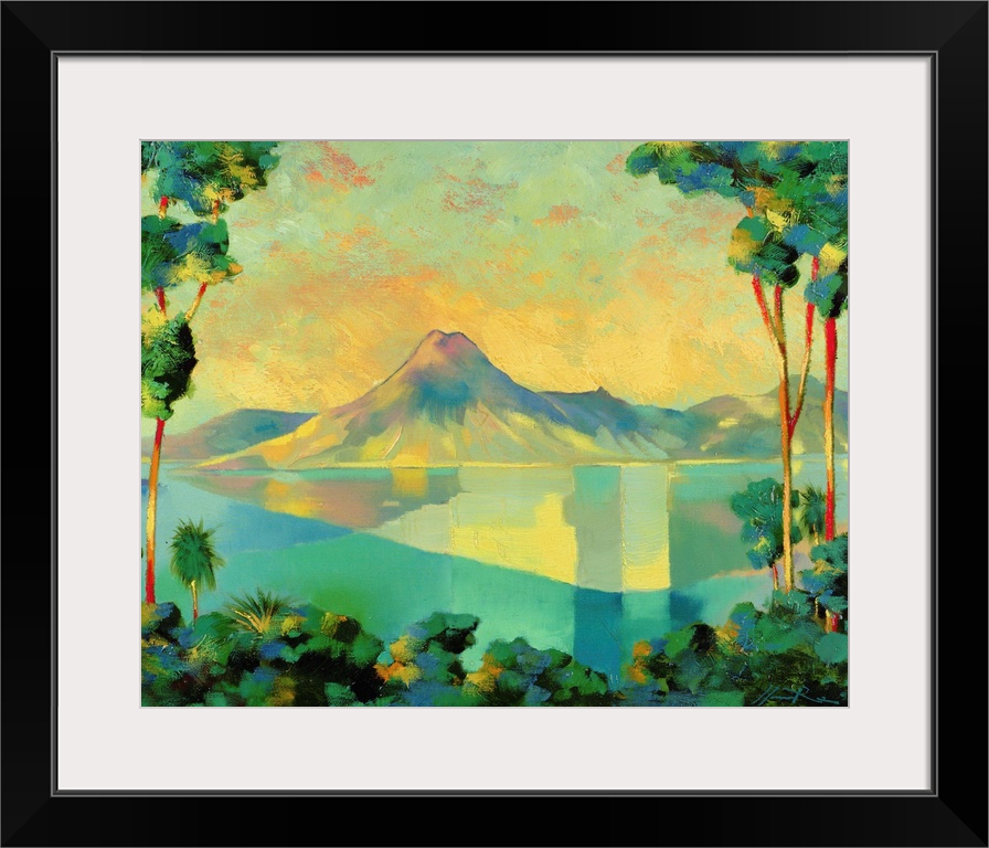 <p>Contemporary painting of a peaceful lagoon landscape.</p>