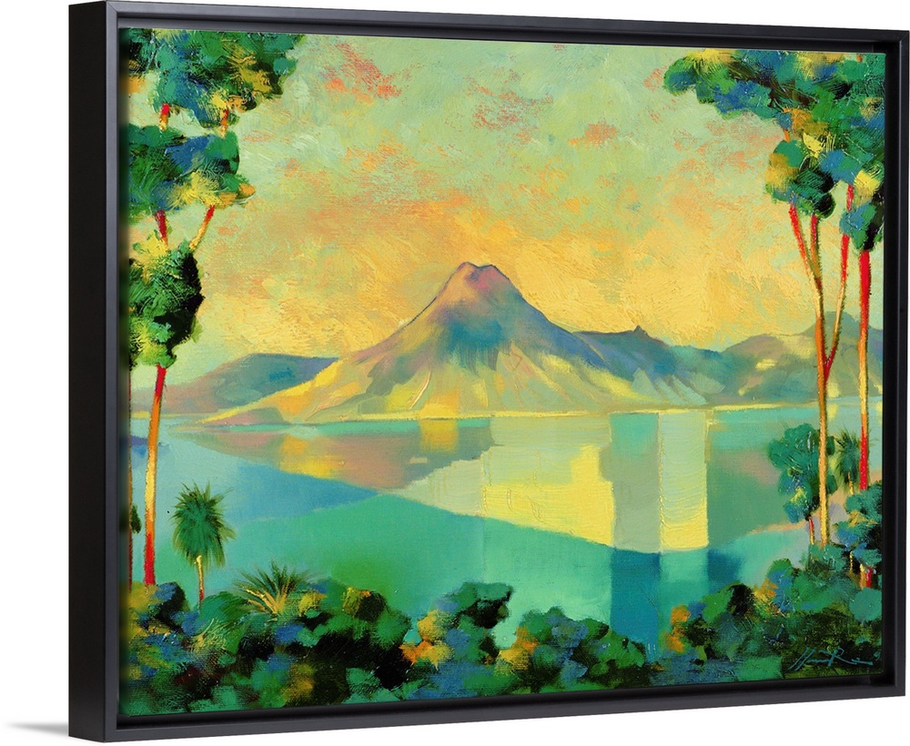 <p>Contemporary painting of a peaceful lagoon landscape.</p>