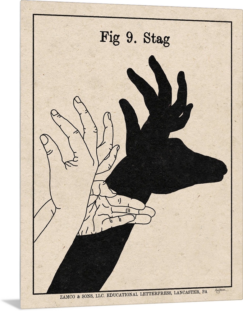 <p>Instructional illustration of a stag hand shadow puppet.</p>