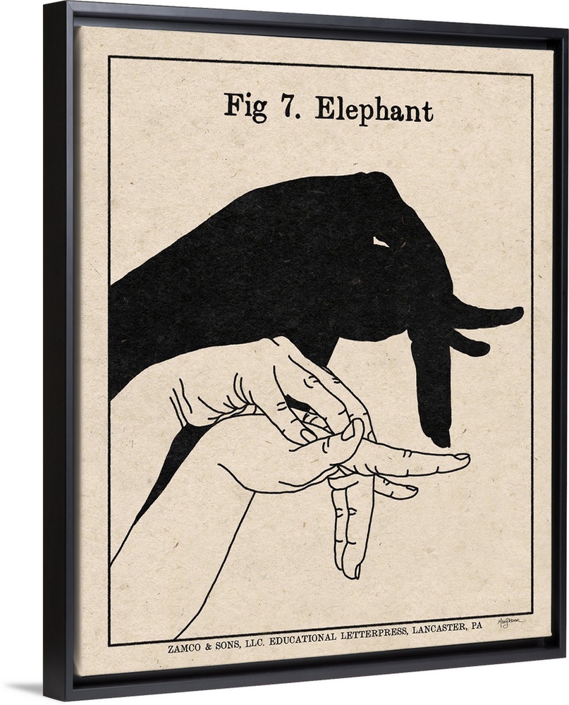 <p>Instructional illustration of an elephant hand shadow puppet.</p>