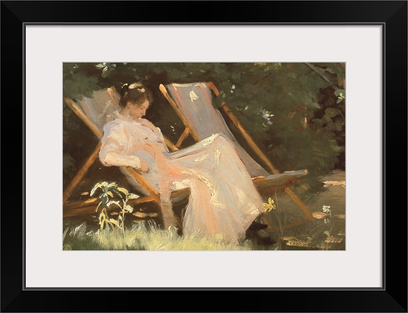 <p>BAL28463 The artist's wife sitting in a garden chair at Skagen, 1893 by Kroyer, Peder Severin (1851-1909); oil on canvas; 24x31 cm; Skagens Museum, Denmark; Danish, out of copyright</p>