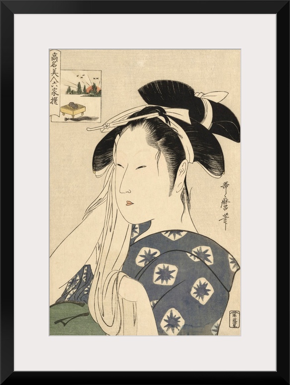 <p>The Asahiya Widow, from the series Renowned Beauties Likened to the Six Immortal Poets, Komei bijin rokkasen, c. 1795-96, color woodblock print.</p>