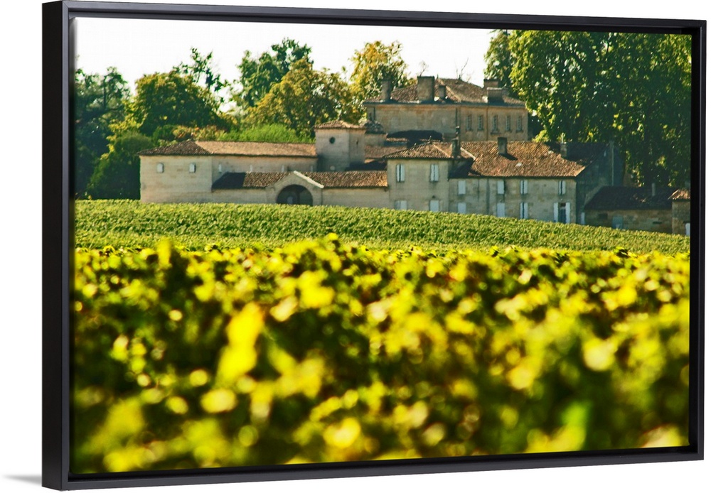 <p>The back side of Chateau Figeac in Saint Emilion, Bordeaux with vineyard in the foreground</p>