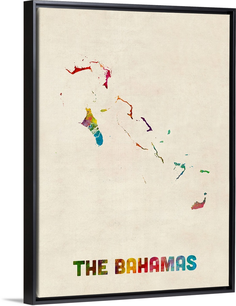 <p>A watercolor map of The Bahamas</p>