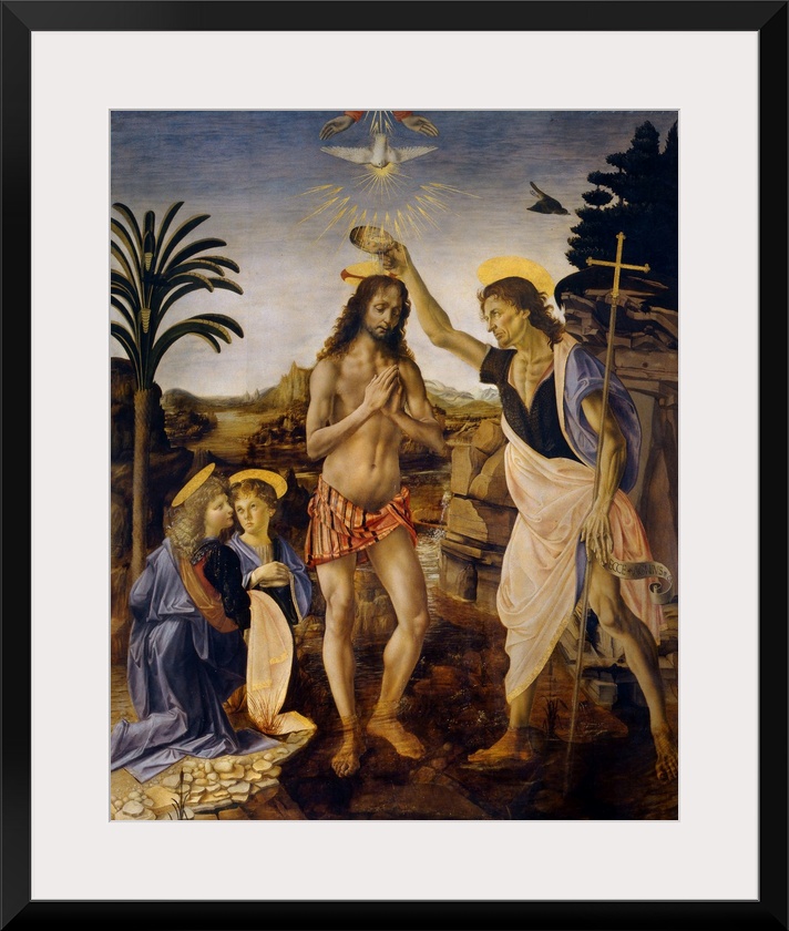 <p>The Baptism of Christ by John the Baptist, c. 1475, oil on panel. By Andrea Verrocchio (1435-88).</p>