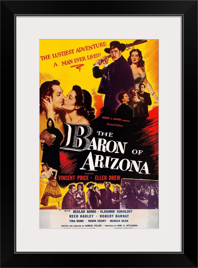 <p>The Baron Of Arizona, US Poster Art, Top Right: Vincent Price, Ellen Drew; Below Vincent Price: Beulah Bondi; Bottom Left: Tina Rome (aka Tina Pine), 1950.</p>