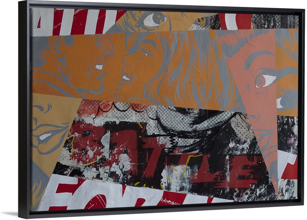 <p>Pop art composed of comic illustrations and bold text, reminiscent of Lichtenstein.</p>