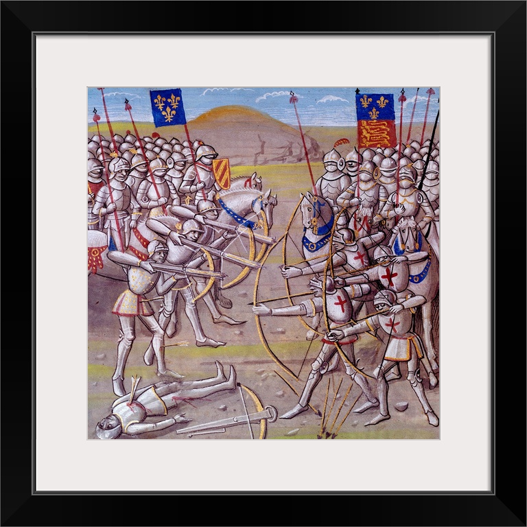 <p>Hundred Years War the Battle of Crecy on 26 August 1346 between the French and the English forces. Miniature from a manuscript of the 14th century. Arsenal Library, Paris, France.</p>