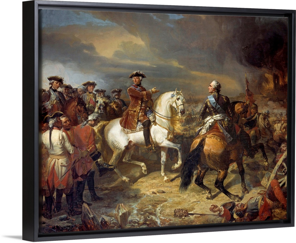<p>The Battle of Lauffeld (or Lawfeld) won by the Marshal Maurice de Saxe, 27 July 1747. Victory of the French army of King Louis XV (riding a white horse) over the British forces led by the Duke of Cumberland. Painting by Louis Charles Auguste Couder (1789-1873), 1836. 4,65 x 5,43 m. Castle Museum, Versailles, France</p>