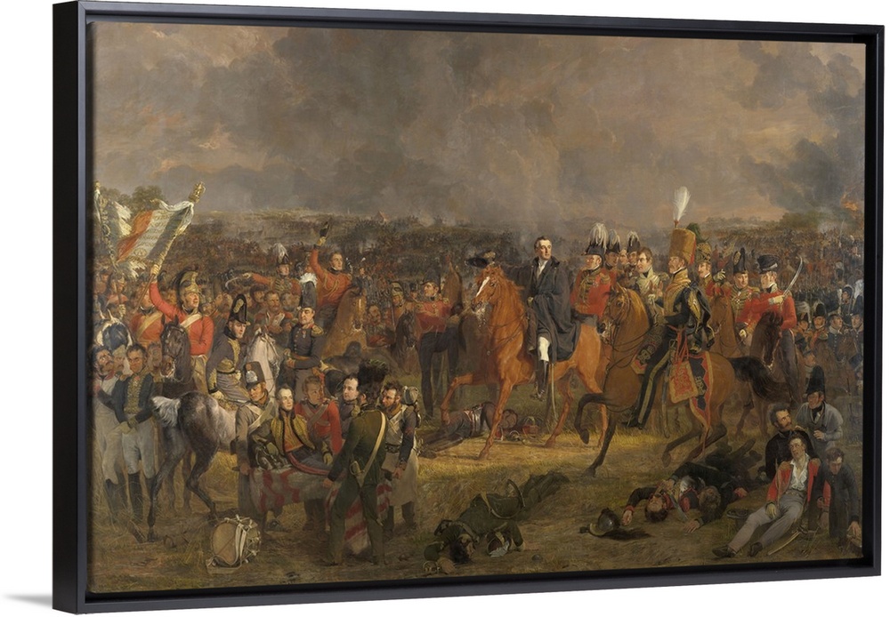 <p>The Battle of Waterloo, by Jan Willem Pieneman, 1824, Dutch painting, oil on canvas. Duke of Wellington receiving the message that Prussian forces are coming to his aid. Dutch Crown Prince, later King William II, lies wounded on a stretcher in the left foreground.</p>