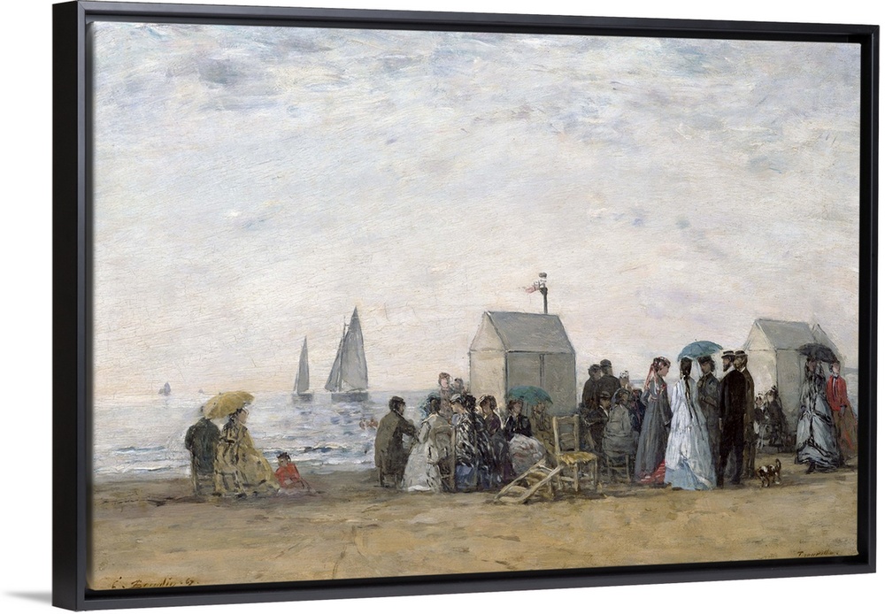 <p>XIR34122 The Beach at Trouville, 1867 (oil on canvas) by Boudin, Eugene Louis (1824-98); 32x48 cm; Musee d'Orsay, Paris, France; Giraudon; French, out of copyright</p>