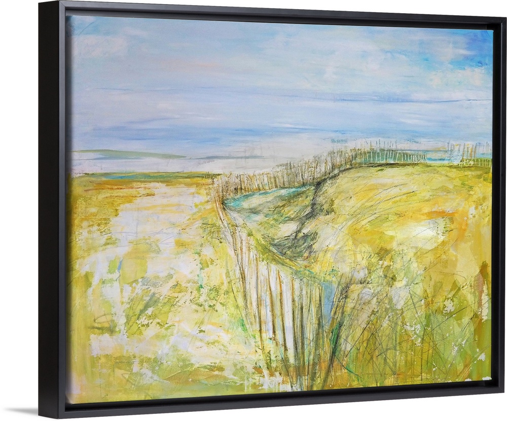 <p>Abstract beachscape with beachgrass painted in bright citron yellow.</p>
