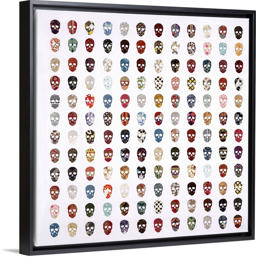 <p>Square painting of repetitive images of human skulls in different patterns.</p>