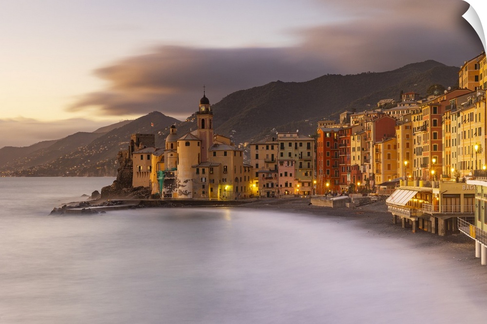 <p>The beautiful village of Camogli during an autumn sunset, Camogli, Genova province, Liguria, Italy, Europe</p>