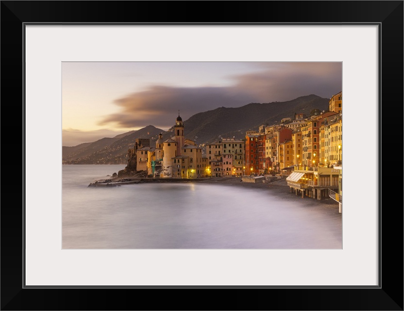 <p>The beautiful village of Camogli during an autumn sunset, Camogli, Genova province, Liguria, Italy, Europe</p>