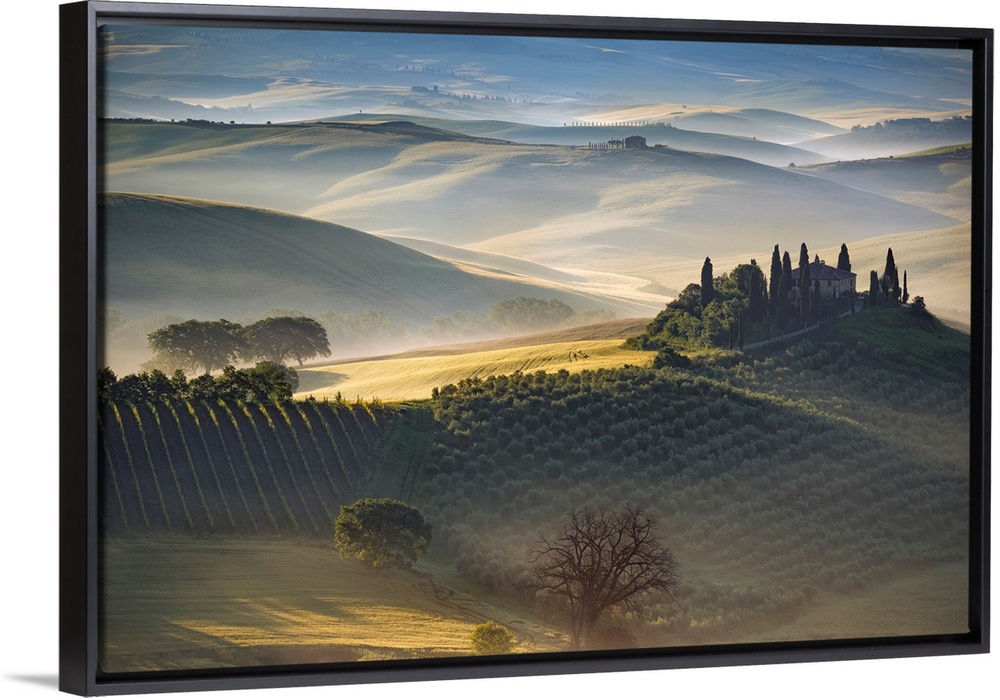 <p>Italy, Tuscany, Val d' Orcia. The Belvedere farmhouse at sunrise. Credit: Jim Nilsen</p>