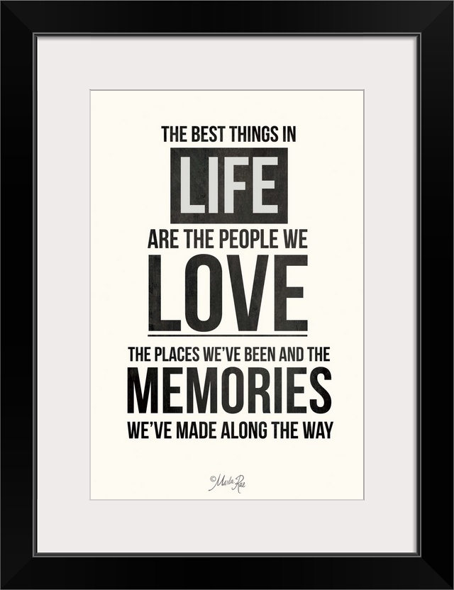 <p>Bold typography design in black and white about love, family, and memories.</p>