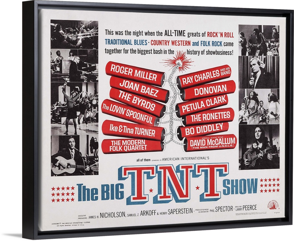 <p>The Big T.N.T. Show, Us Lobbycard, Left, Second Inset: Ray Charles; Left, Bottom Inset: Roger Miller; Right, From Top: The Lovin' Spoonful, David Mccallum. Tina Turner, Joan Baez, 1966.</p>