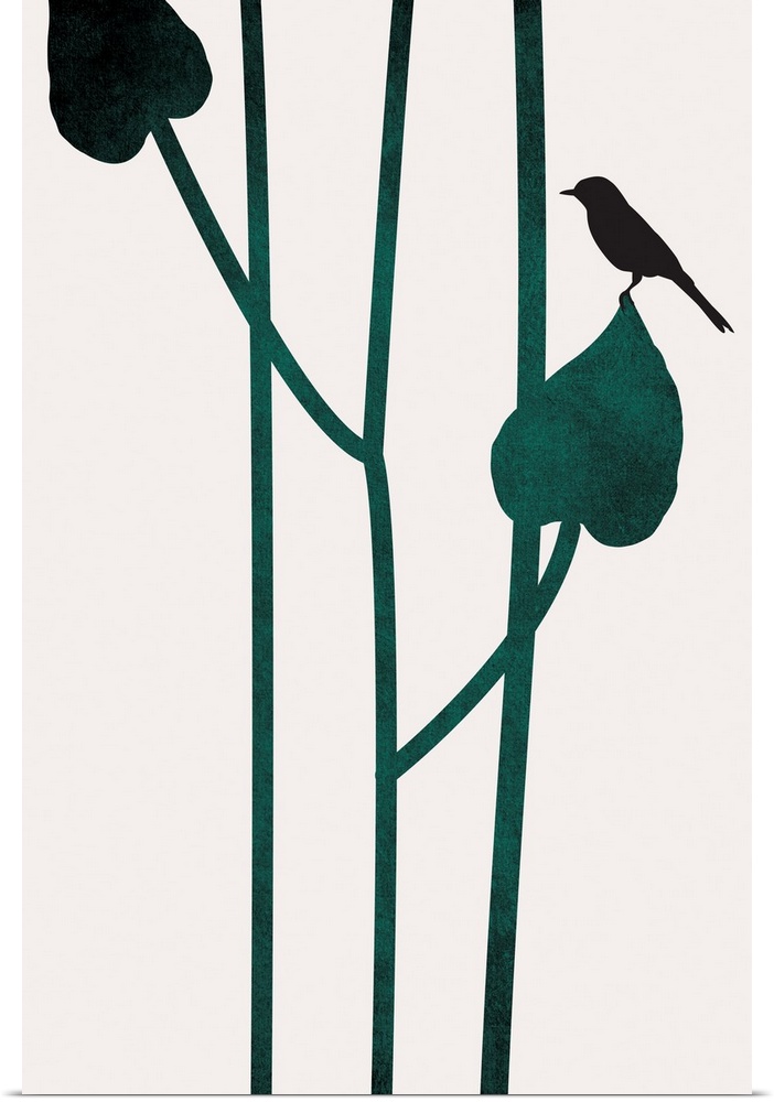 Art Plants and Flowers Winter Florals Decorative Art Florals Leaves Graphic Art Green Wall Art Kubistika Art Wildlife Bird