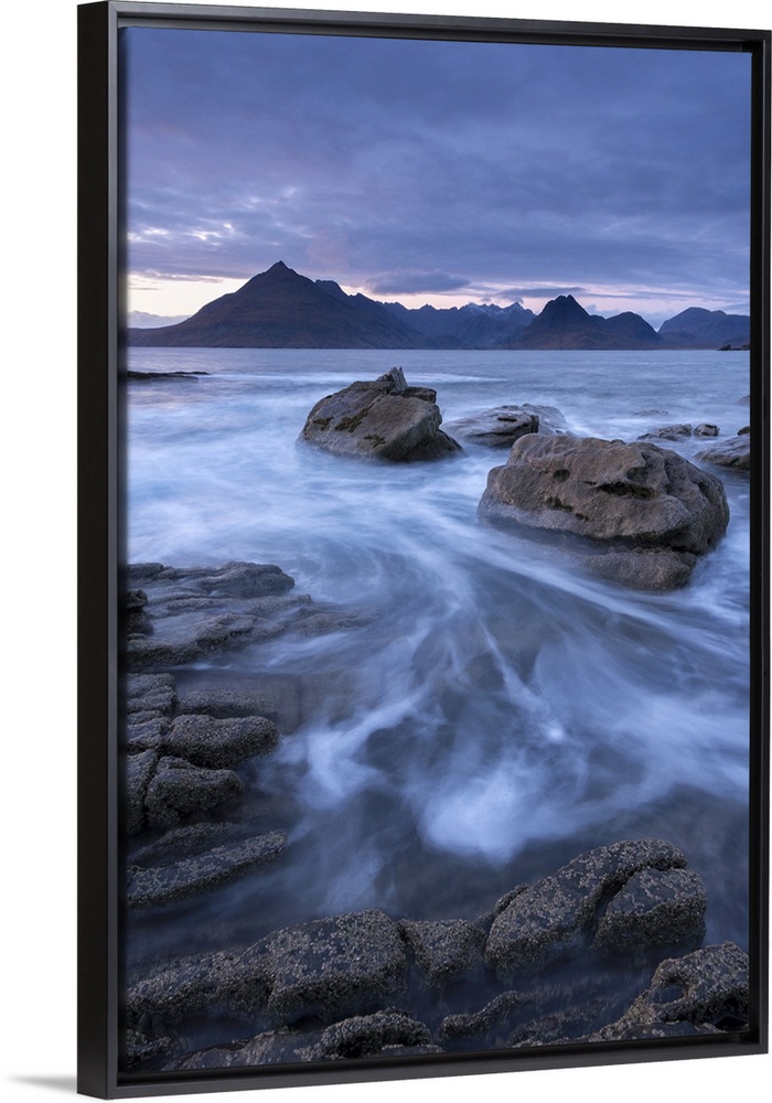 <p>The Black Cuillin mountains from the rocky shores of Elgol, Isle of Skye, Scotland. Winter (December)</p>