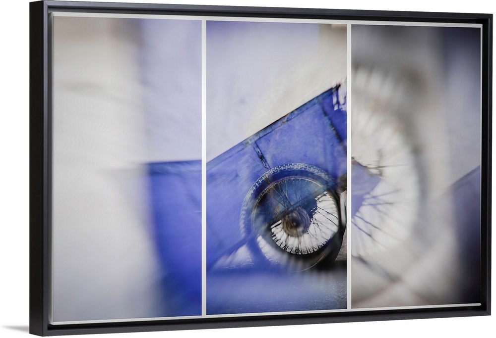 <p>Triptych image of a blue wagon created with multiple exposures.</p>