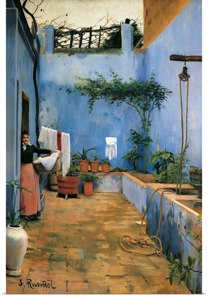 <p>RUSInOL i PRATS, Santiago (1861-1931). The Blue Courtyard. 1892. Modernism. Oil on canvas. SPAIN. Monistrol de Montserrat. Museum of Montserrat. -</p>