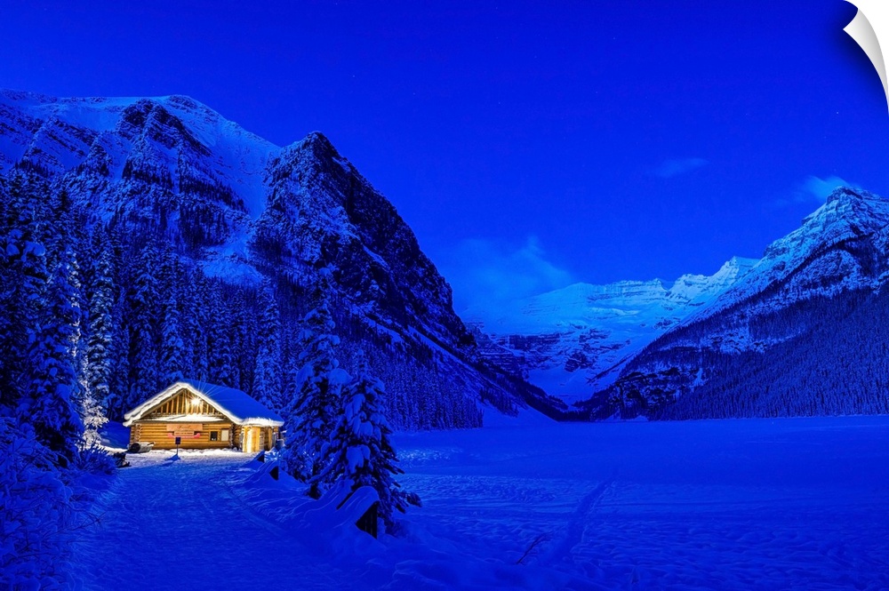 <p>The blue hour at Lake Louise in winter in Banff National Park.</p>