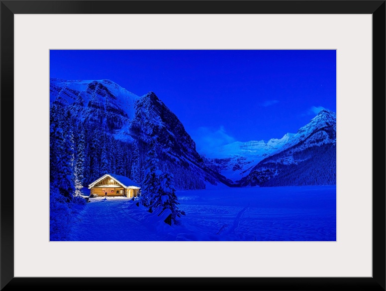 <p>The blue hour at Lake Louise in winter in Banff National Park.</p>