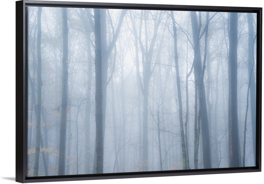 <p>Moody mist descends on forest trees.</p>
