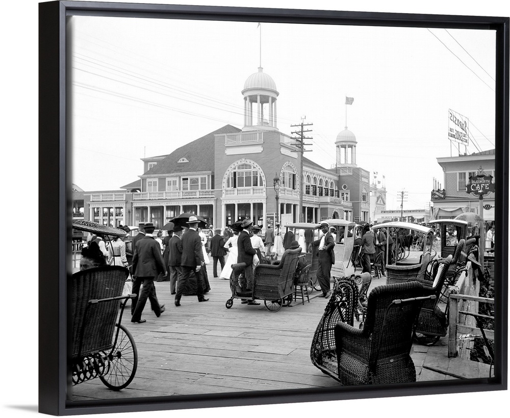 <p>Atlantic City, C1900. The Boardwalk And the Steel Pier Amusement Park In Atlantic City, With Wheeled Chairs In the Foreground.</p>