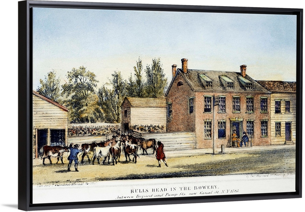 <p>The Bull's Head Tavern in the Bowery, New York, as it appeared in 1783. Lithograph, 1861.</p>