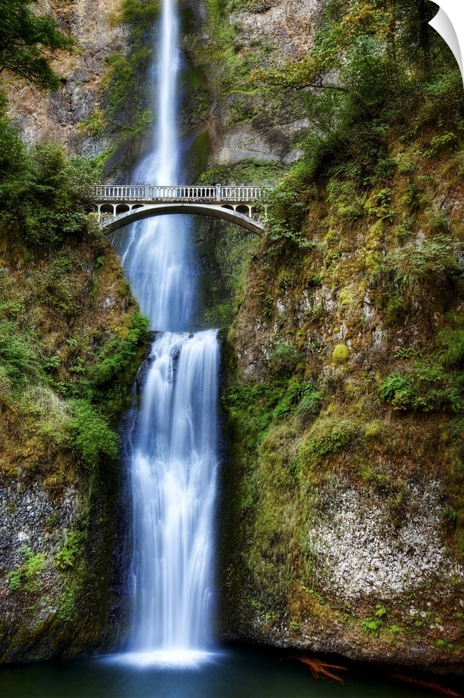 <p>The bridge and waterfalls at Multnomah Falls in Oregon.</p>