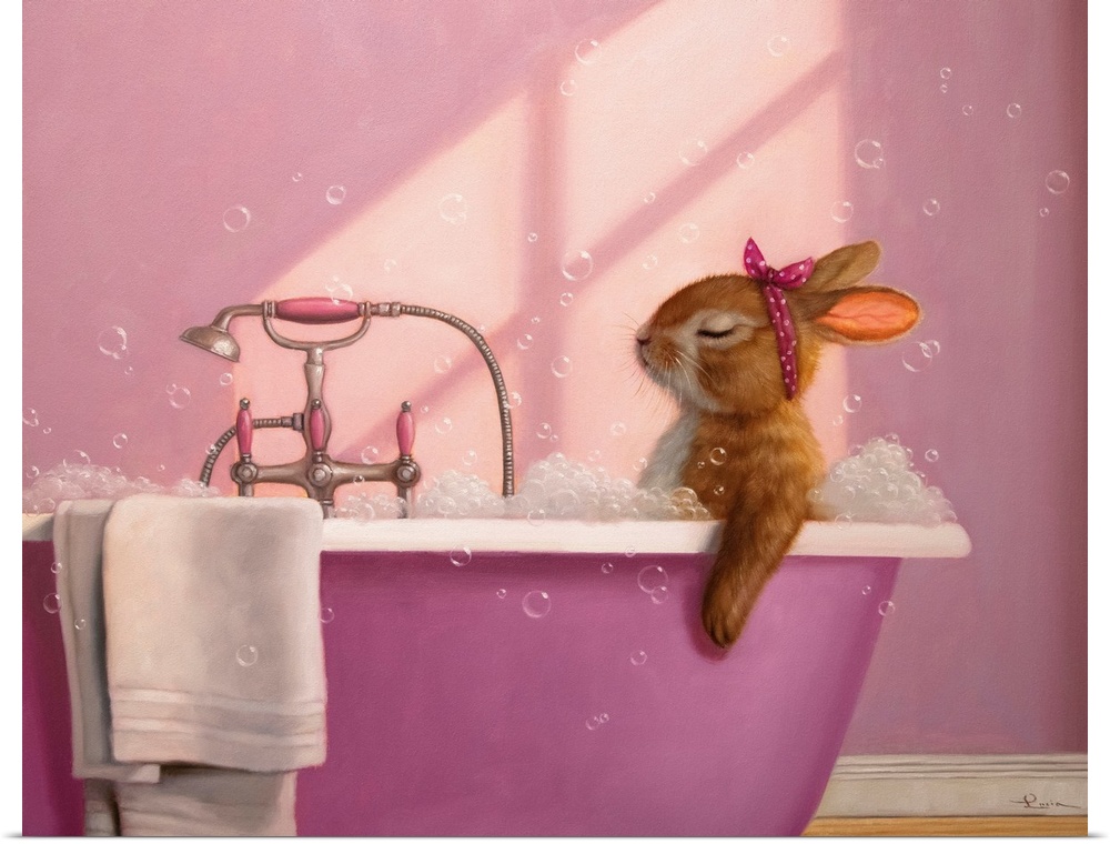 Art Bathroom Art Contemporary Art Lucia Heffernan Painting Pink Wall Art Wildlife Rabbit