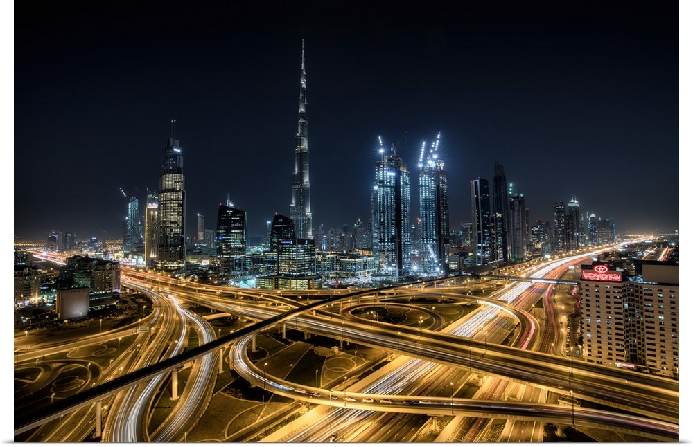 <p>The Burj Khalifa and massive interchange of Dubai.</p>
