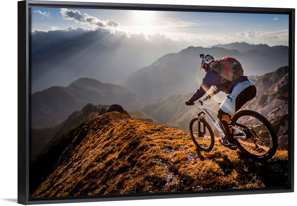 <p>A silhouetted mountain bike rider seen in the early morning light.</p>
