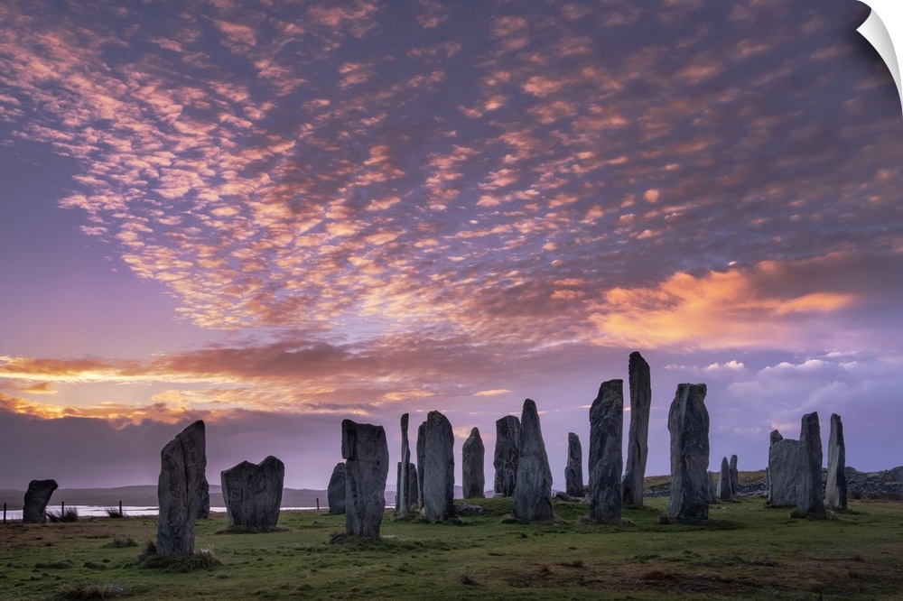 <p>The Callanish Standing Stones at sunrise, Callanish, Isle of Lewis, Outer Hebrides, Scotland, United Kingdom, Europe</p>